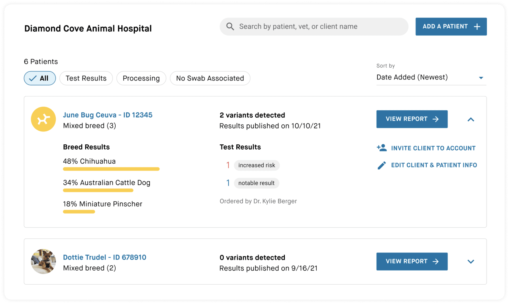 3. Results in 2-4 weeksWe'll notify you by email when results are ready. You'll be able to access every patient's report in your dashboard and share with owners.
